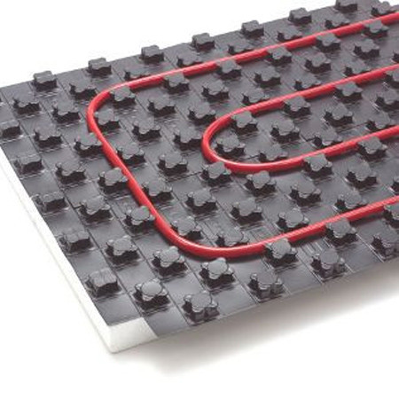 Мати із фіксаторами Rehau Varionova для швидкого монтажу труб. Мат забезпечує надійну фіксацію труби, міцність при кроковому навантаженні та надійну гідроізоляцію, щоб уникнути проникнення води в стяжку.