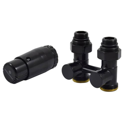 Радиаторный комплект выполнен в черном цвете (RAL9005), и подходит для подключения различных дизайнерских радиаторов или полотенцесушителей.